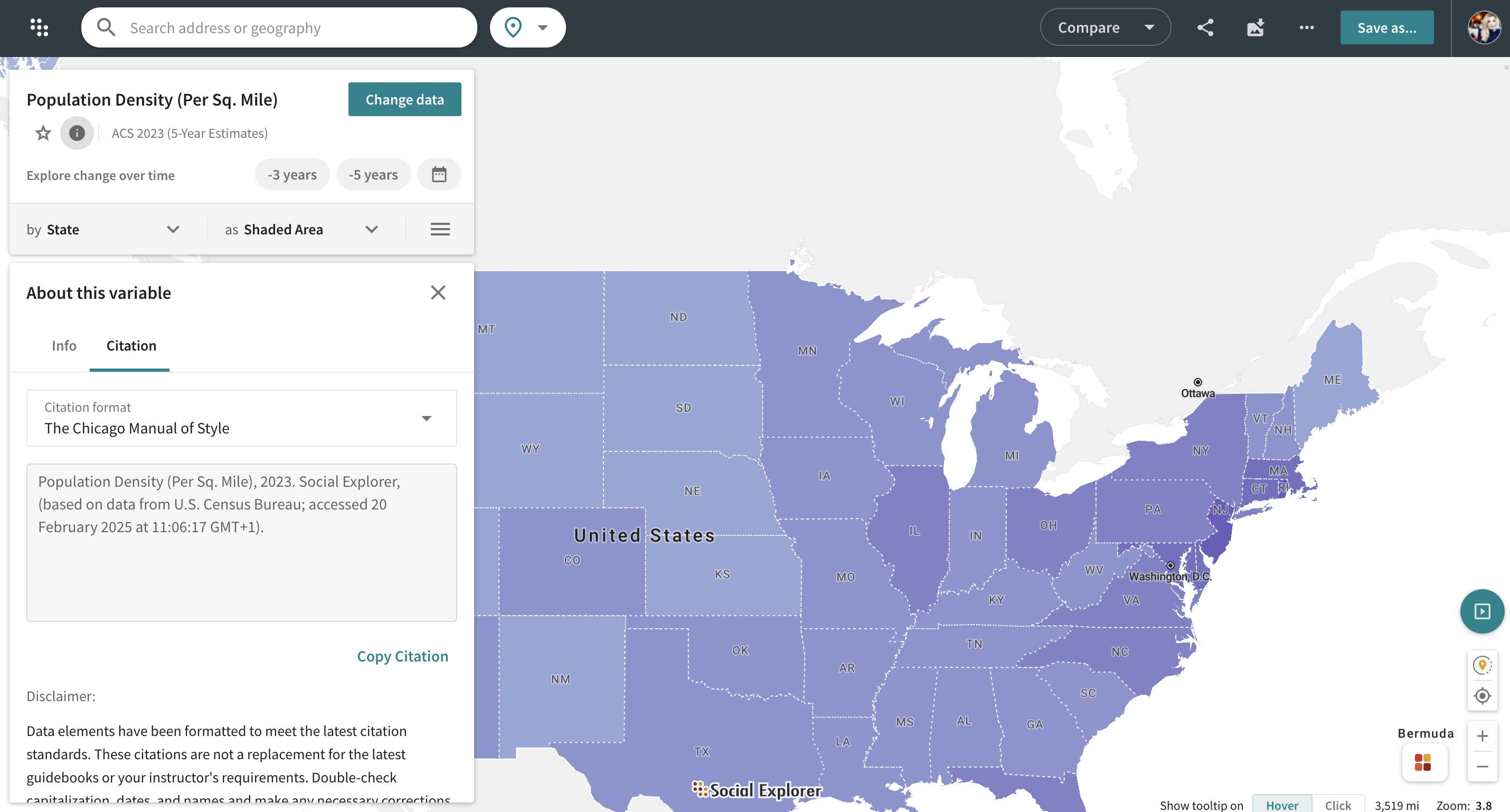 When referencing Social Explorer maps or reports in your academic papers, our new citation tool automatically generates citations in three formats.