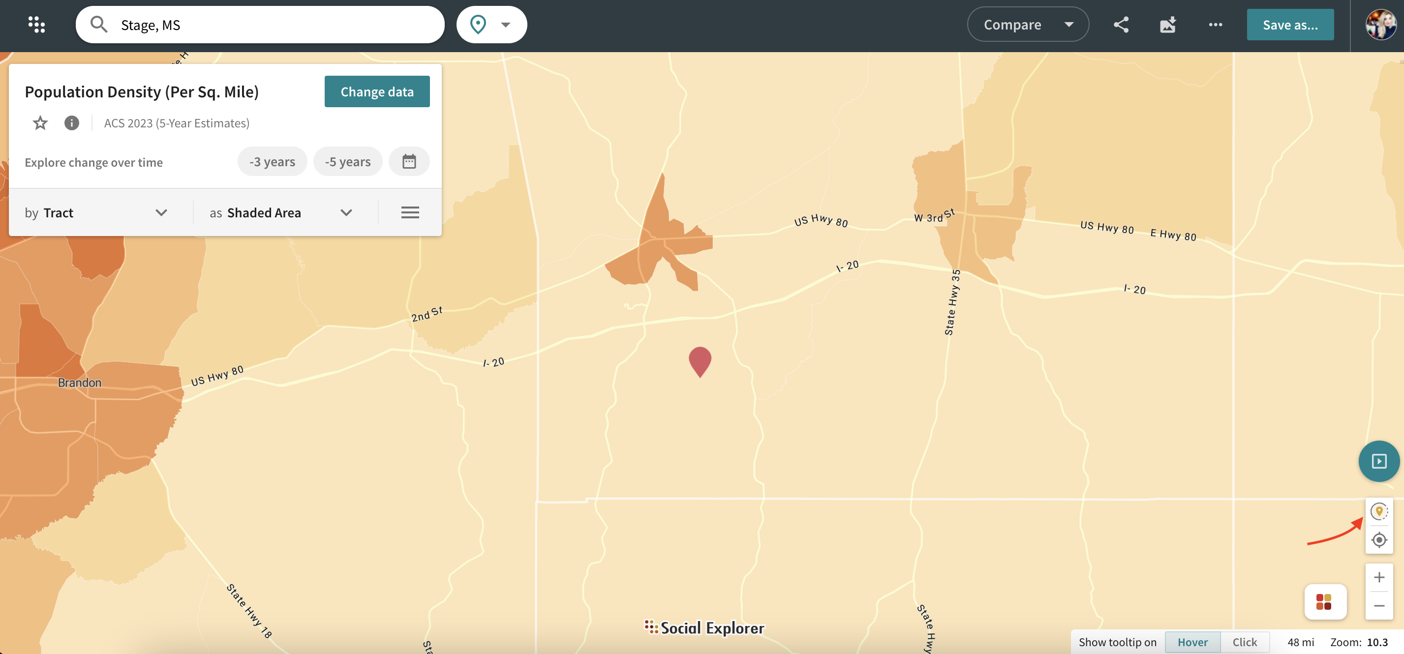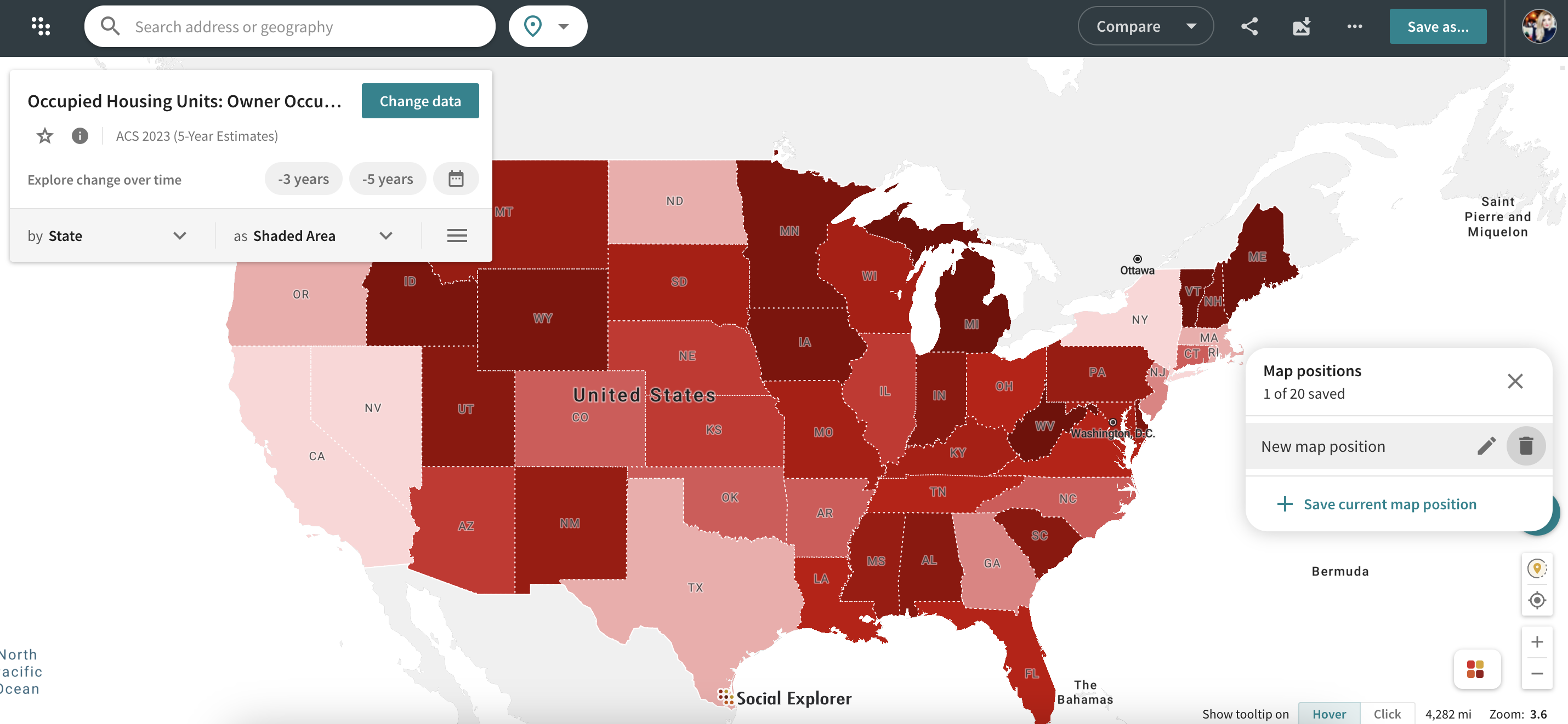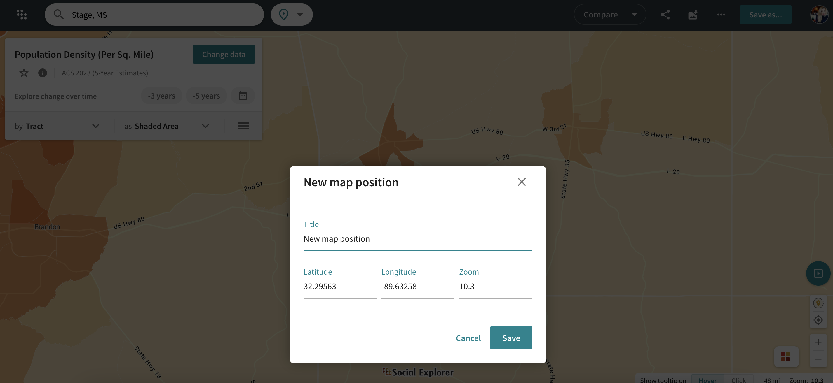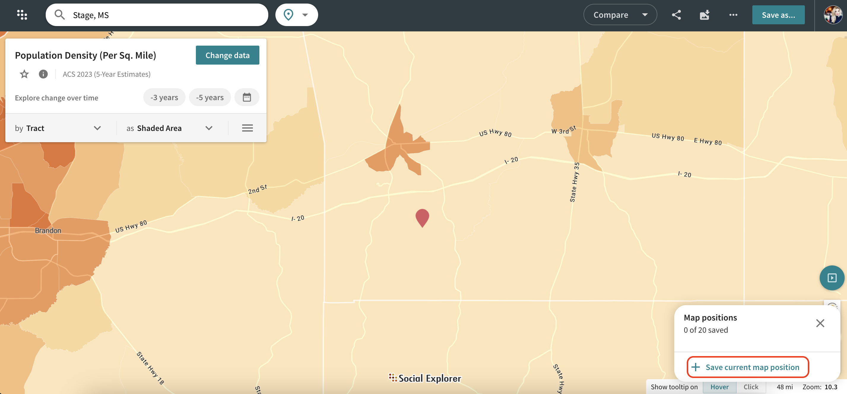 Once you have created a map of your interest, you can now save that exact map position for future use. The Save Map positions feature allows you to save your demographic areas of interest, return to those areas quickly, and navigate these maps with ease.