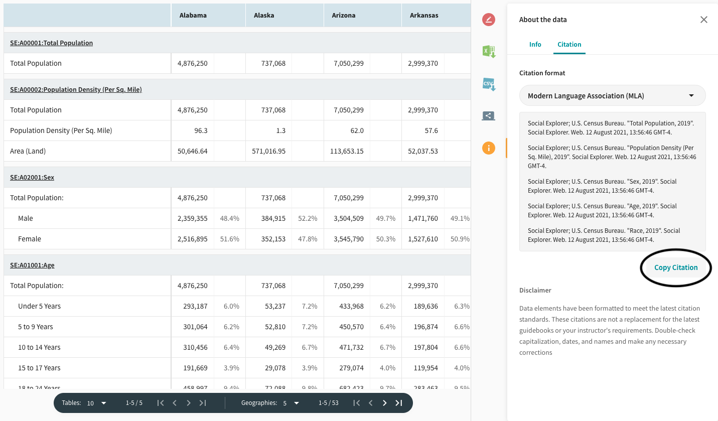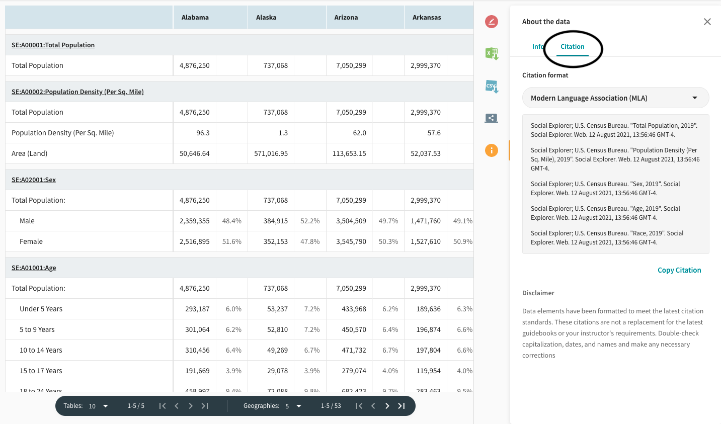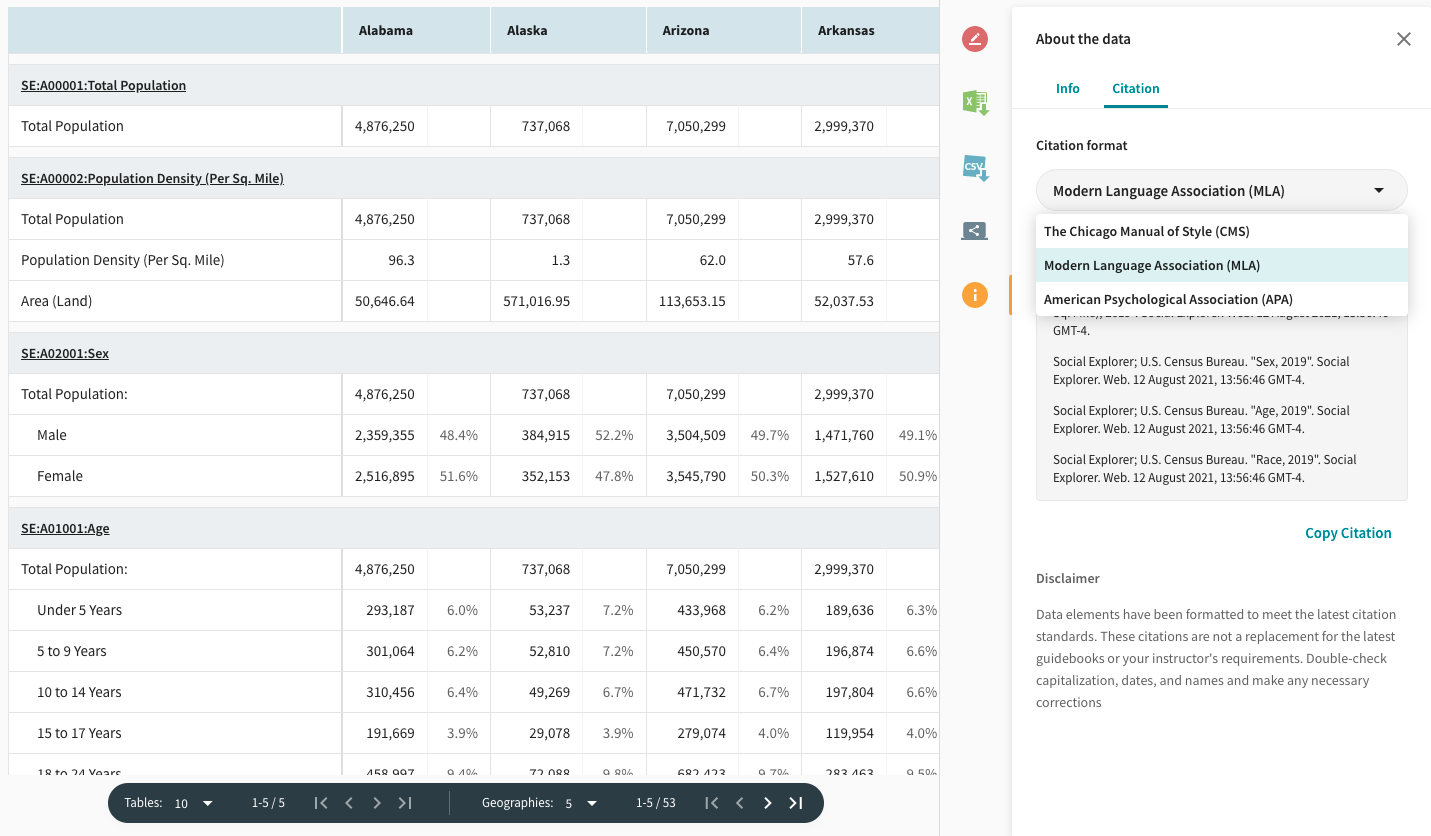 From now onward, when referencing Social Explorer maps or reports in your research papers, simply use the citation tool to automatically generate citations in the following formats: