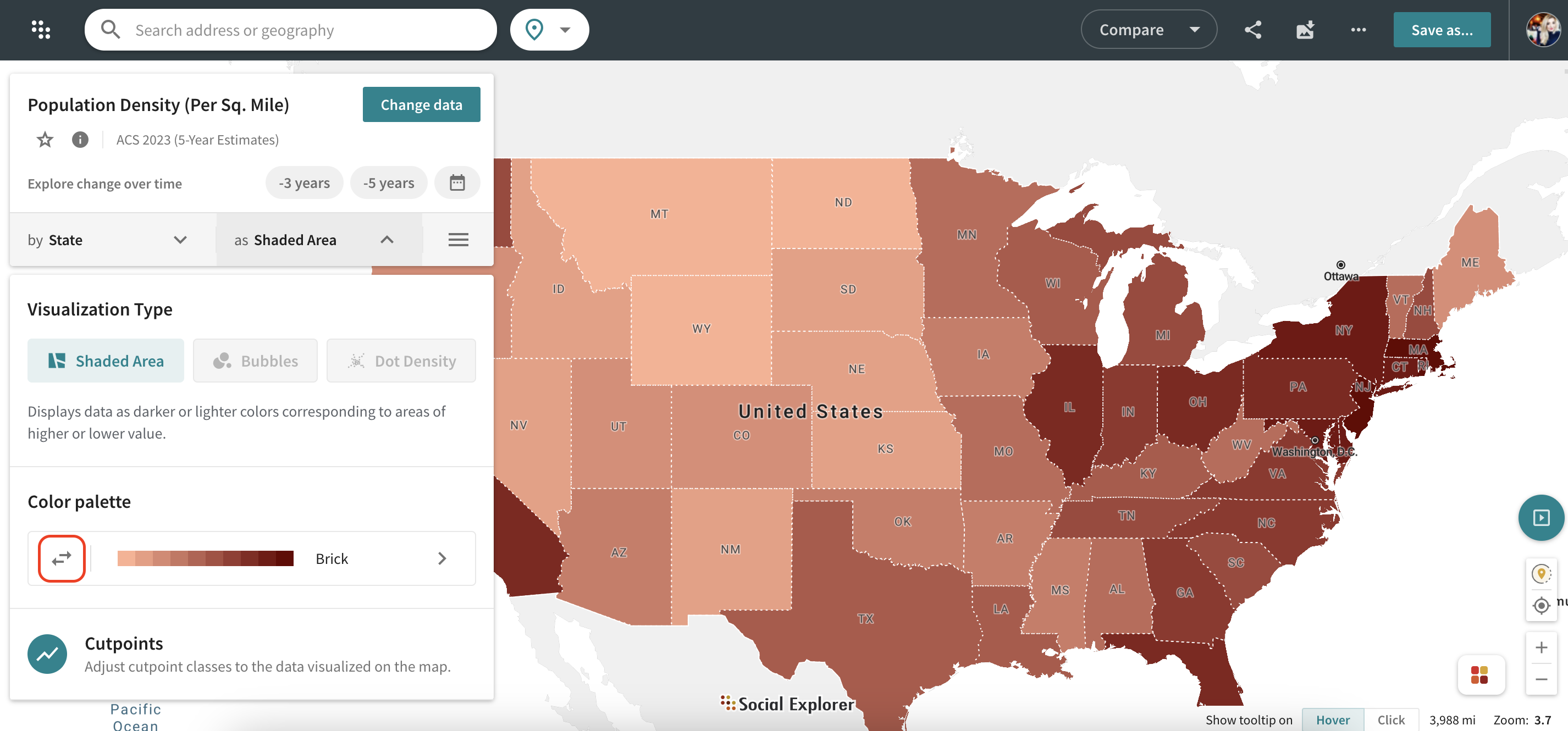 - Click the icon in the map legend in the bottom right corner of your map.