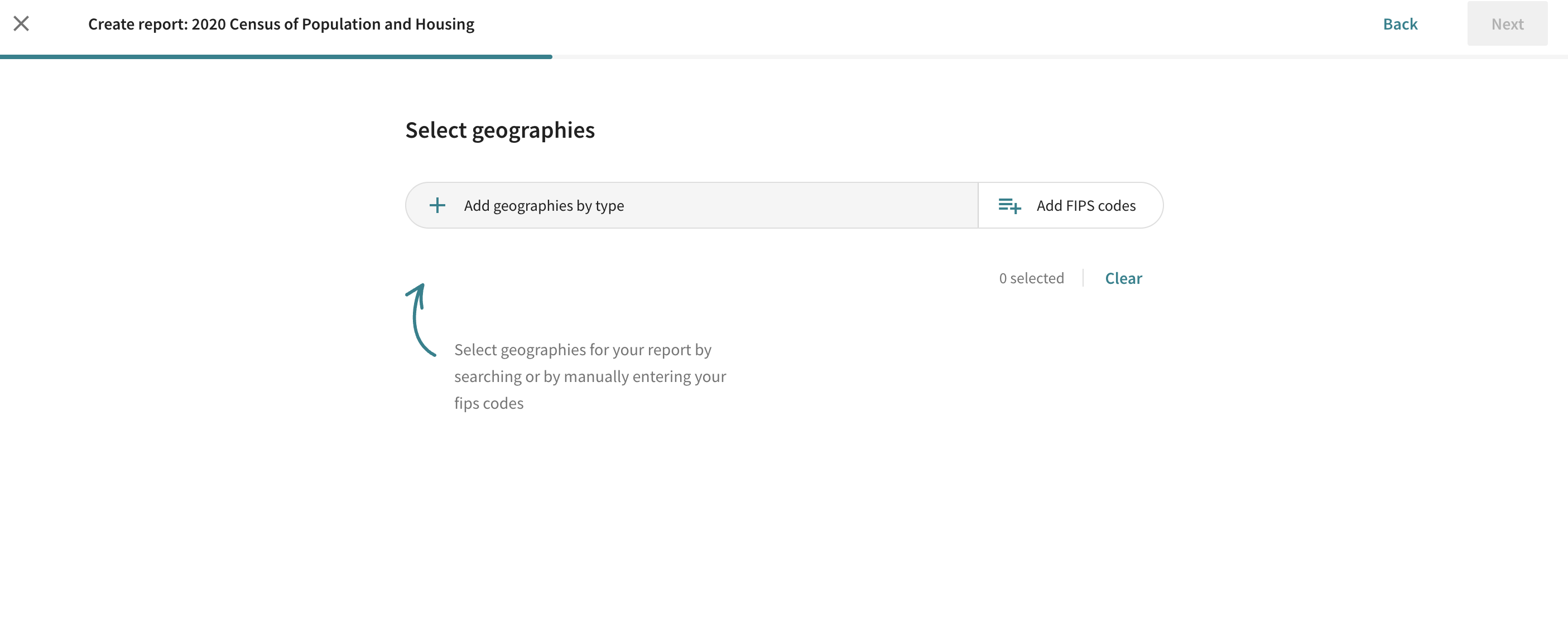 | Note: You can also add geographies by FIPS codes. Select the geographic type and enter the codes to add them quickly. |