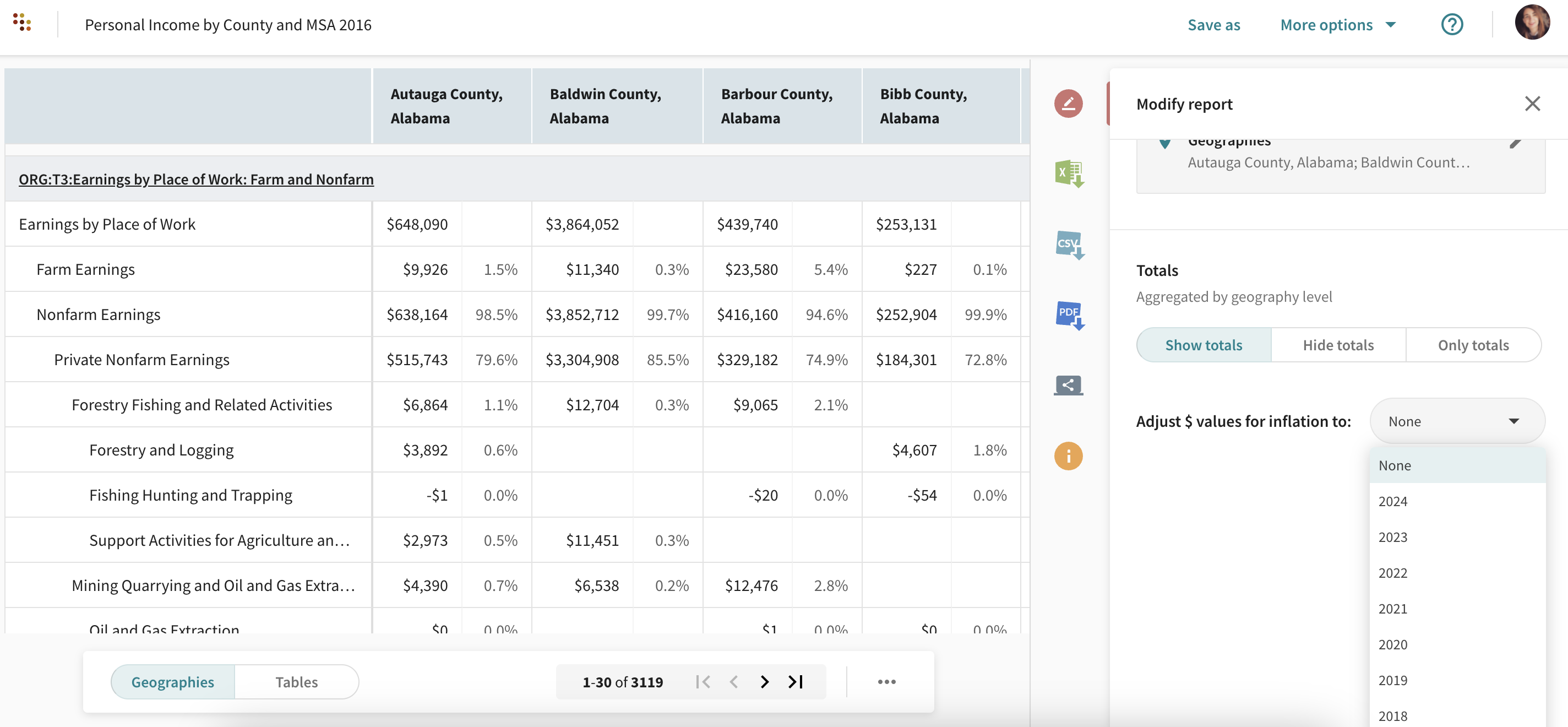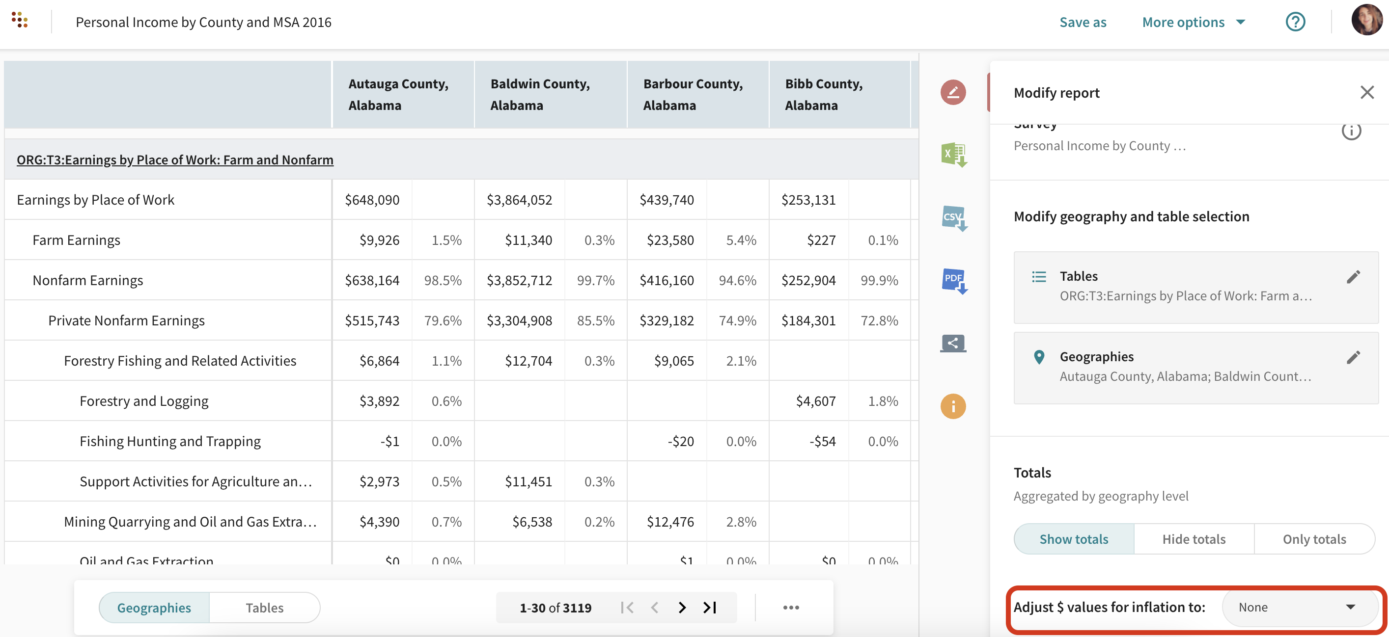 - The inflation adjustment option will appear automatically if $ variables are included.